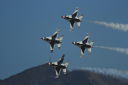 動かず撮影。ほぼ一日中、天気が曇りで、午後3時を過ぎたあたりからの露出が厳しかった。サンダーバーズはビデオで