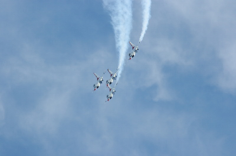 スタンド自体が華奢で揺れるため、どうもビデオ撮影に不向きで、写真中心に切り替える。サンダーバーズの飛行が終
