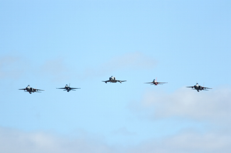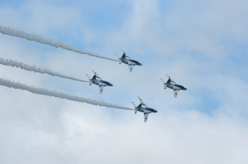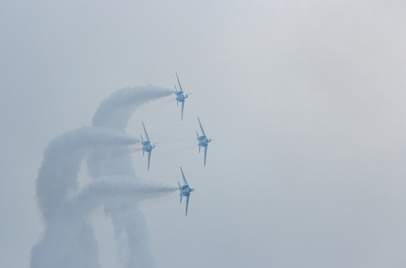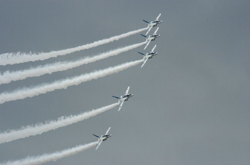 ブルーインパルスの飛行のときが一番雲が多くて水平系のみとなってしまう。異機種大編隊のときは