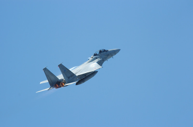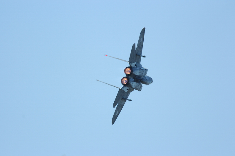 がいた。地上展示機の撮影をあきらめ、西よりの草地へ歩いていく。朝は寒かったけど、天気快晴で