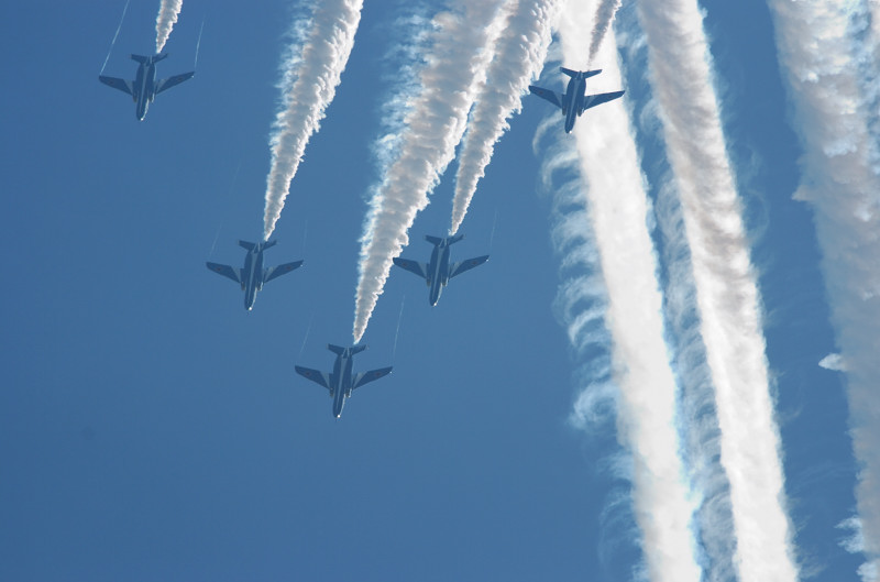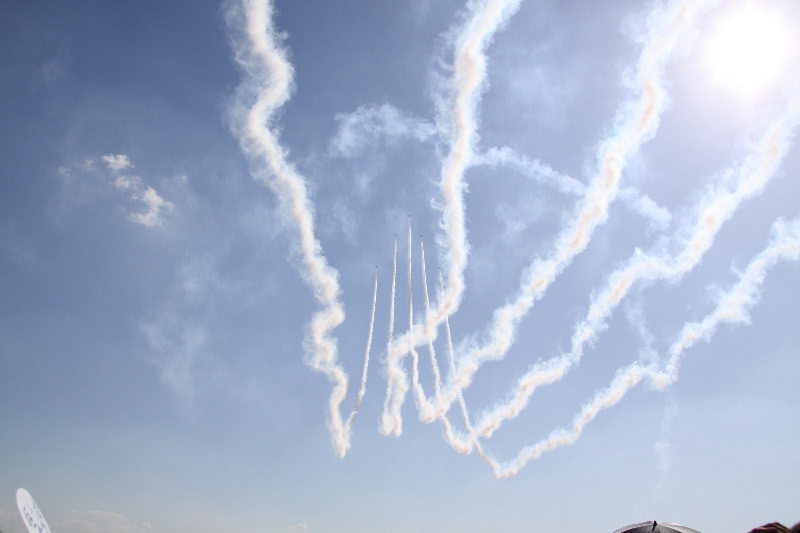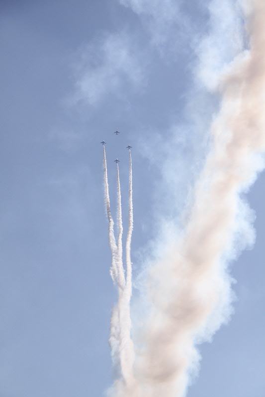 気温も上がってきて半袖でちょうどいいぐらい。異機種大編隊もブルーインパルスも青空のもとで見ら