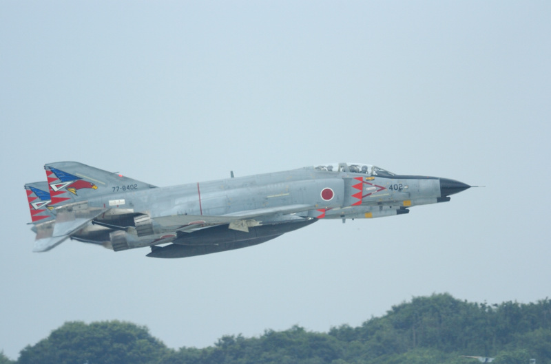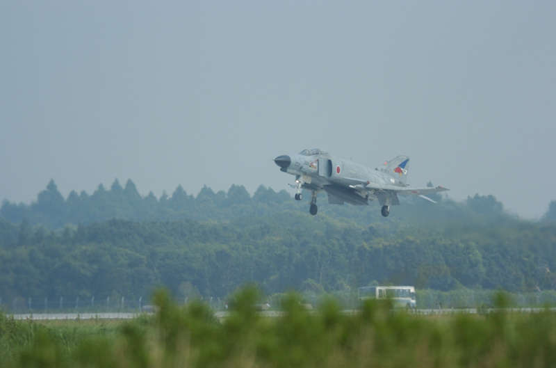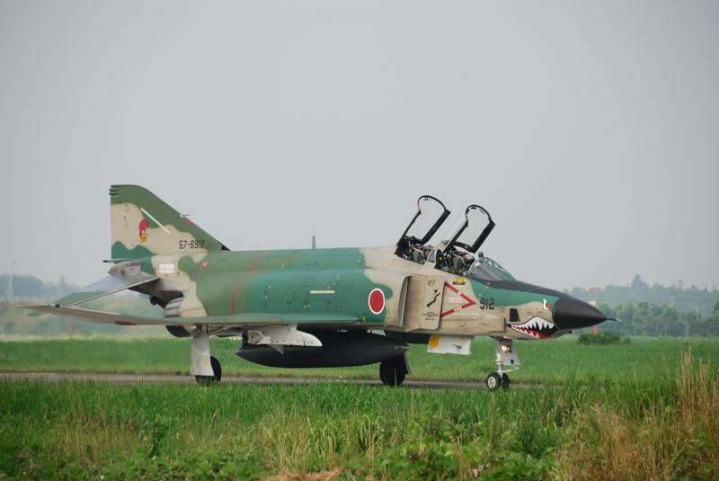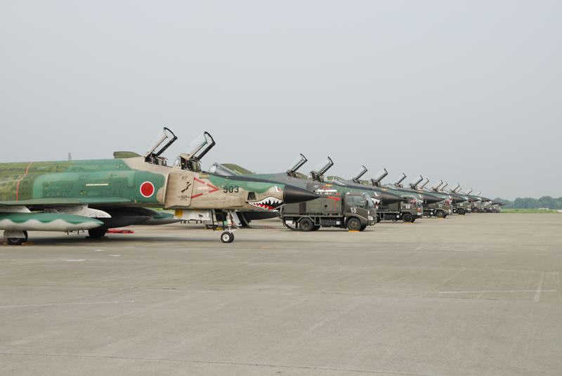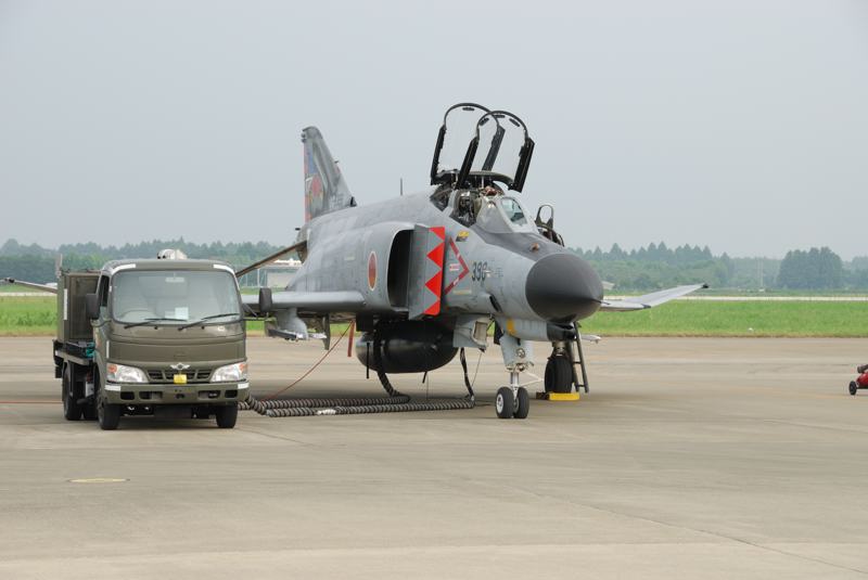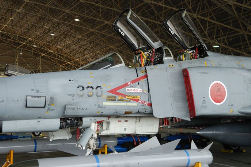不良になりハンガー内のブルーシート上で大休止。午後の部の、RF-4は初めてビデオで