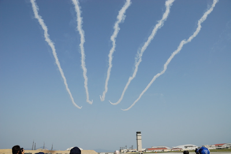 今年は、岩国で観ておかないと秋までブルーインパルスを見られないようなので、久々に読売