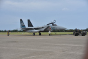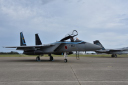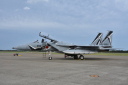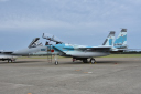 入口でもらったプログラムを見て初めて、午前で飛行展示が終わるのを知った。9時前にF15が上がり出した。オー