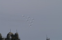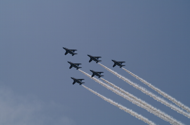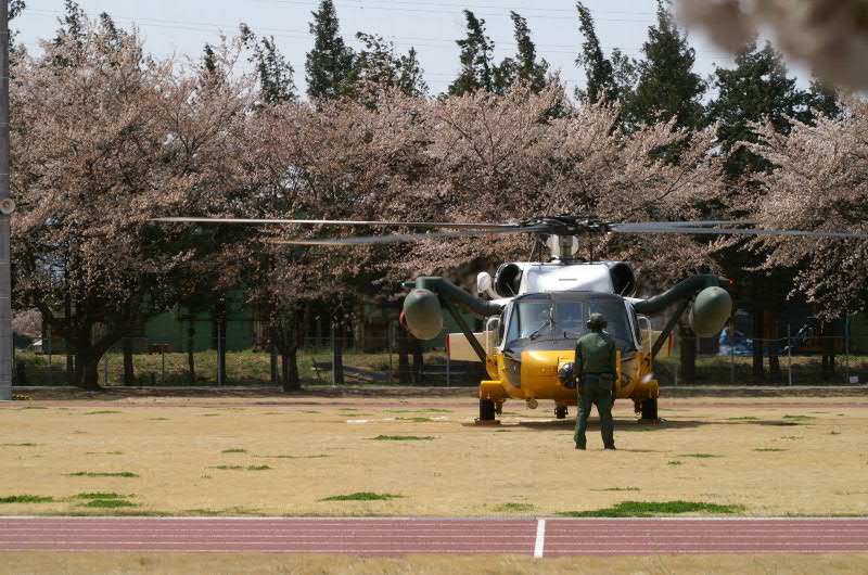 風で肌寒いぐらい。午後の、ブルーインパルス登場までひたすら待つ。桜をバック