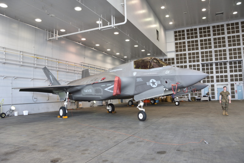 かすごいことに。ハンガーの中にいたF-35 もエプロンに移動して、展示されていた。晴天で風があって暑く
