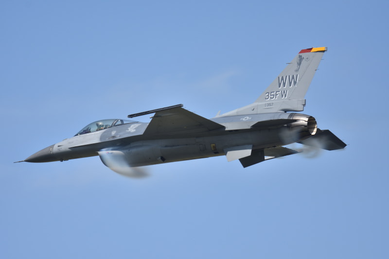 は中止となったけど、F-2 の模擬空対地攻撃からスケジュールどおり行われた。空も雲があるものの一部