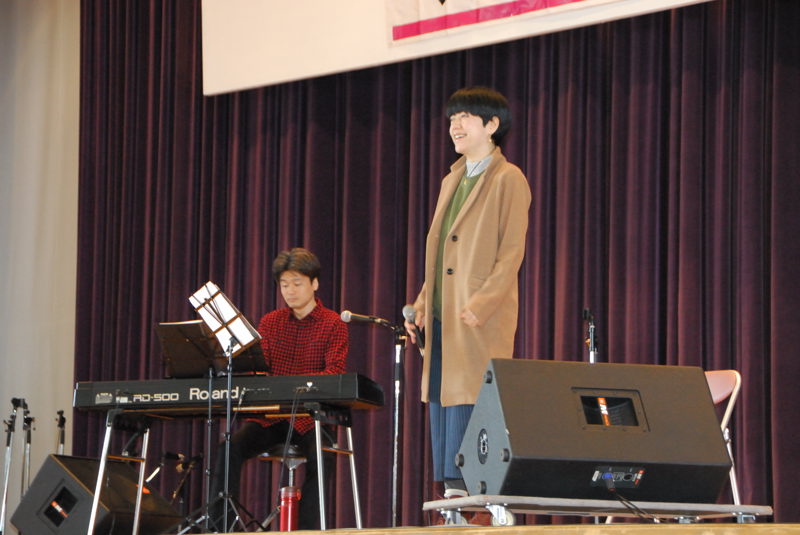 いくのさんのステージが始まった。「真赤な秋」、「赤とんぼ」、「あめふりくまのこ」、「流