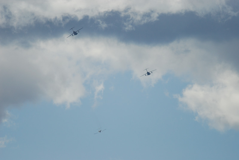 場所はかなり遠い位置となってしまい、会場まで15分ほど歩く。すでに飛行が始まっていた。天