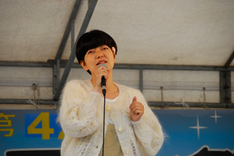 った。バックはウクレレのたけちゃん。いつもより曲数が多く、6曲歌った。「よもちゃん」?と