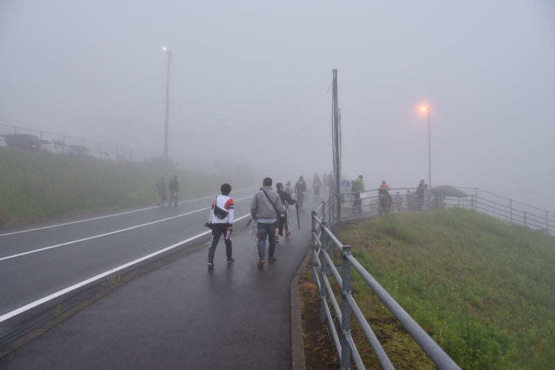 するうちに、雨は止んだけど、今度は凄い霧になってしまう。走行スケジュールは当然、キャン