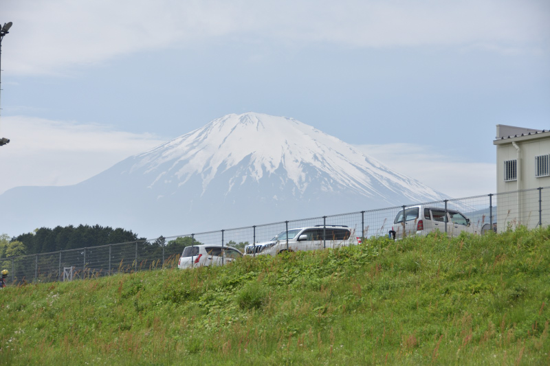 広場に行って各ブースを見てまわる。そして公式予選はグランドスタンドから見る。富士の長いス